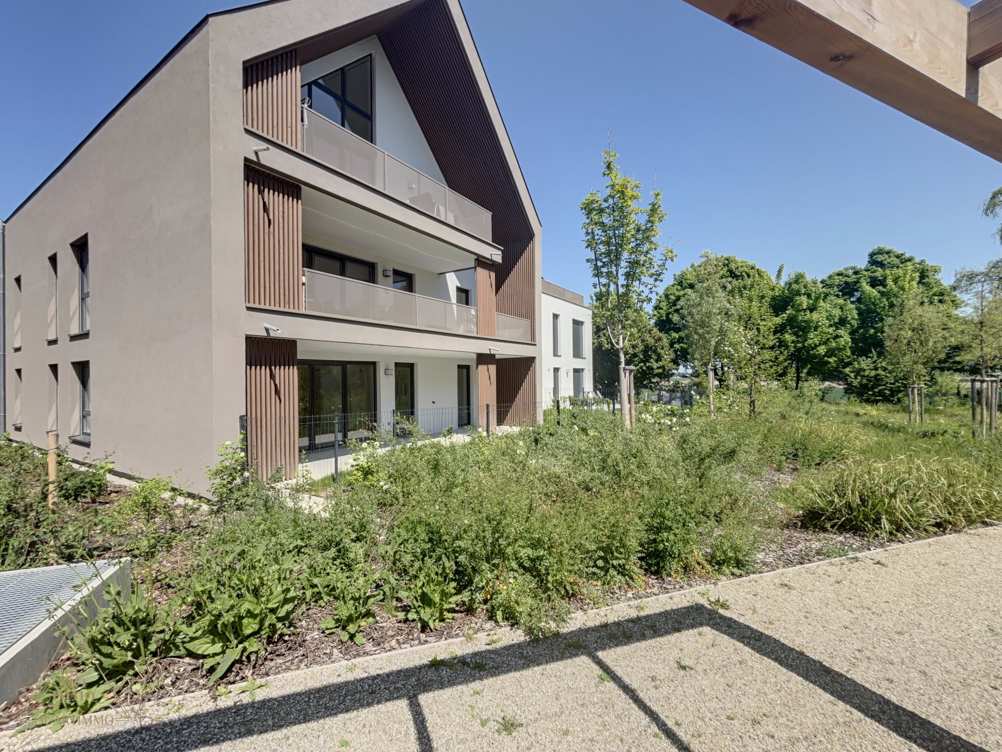 Vendenheim (67550)OUARTIMMO vous propose à la vente ce superbe appartement T4 de 107 m² avec jardin, garage et parking.Dans une résidence neuve, fermée et sécurisée, construite par un promoteur reconnu pour la qualité de ses réalisations, ce bien offre des prestations haut de gamme dans un environnement verdoyant et paisible avec vue sur le canal de Vendenheim.
