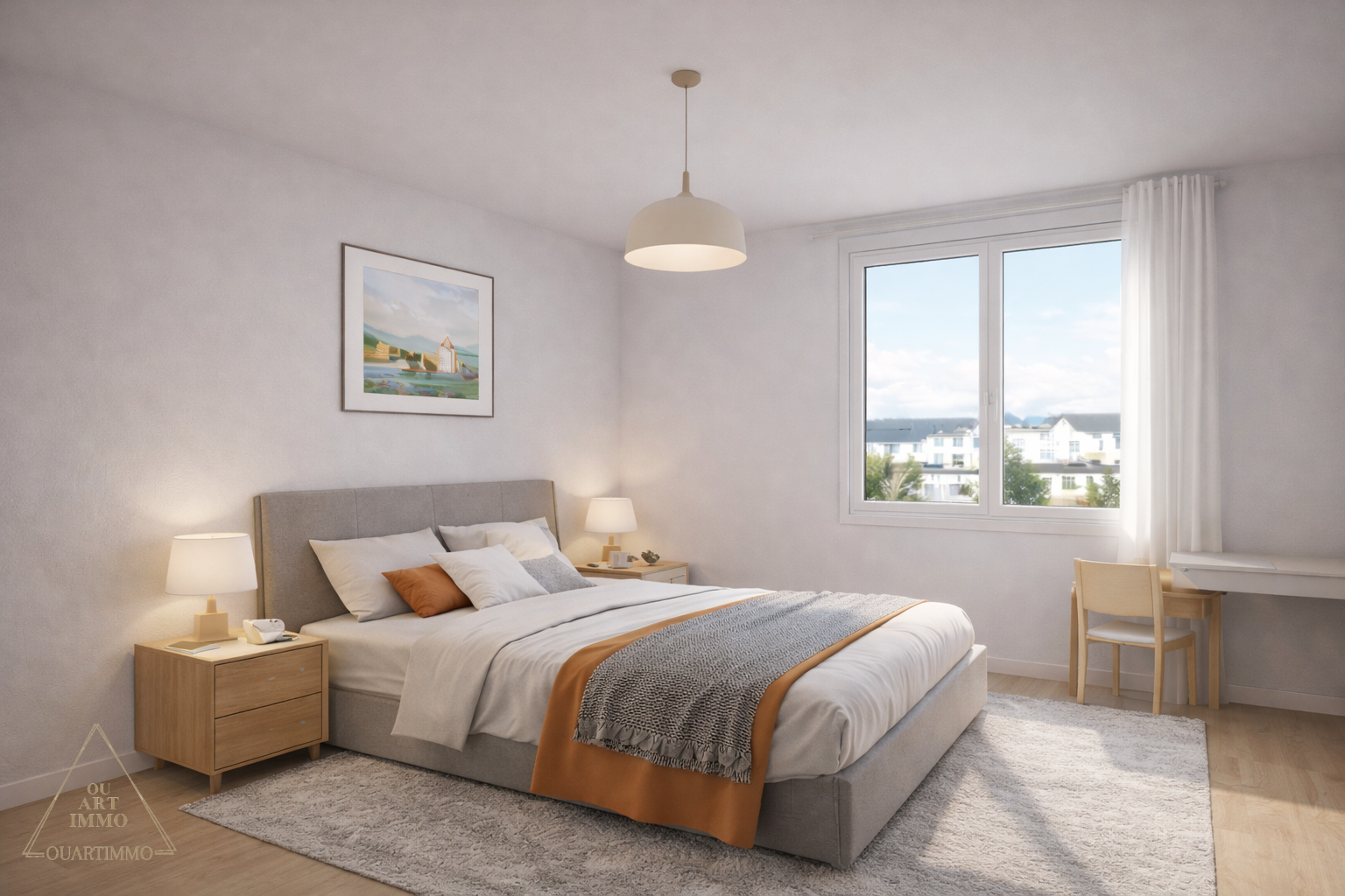 Deux chambres confortables de 12,05 m² et 9,48 m², parfaitement adaptées pour une famille, un bureau ou une chambre d’amis.
