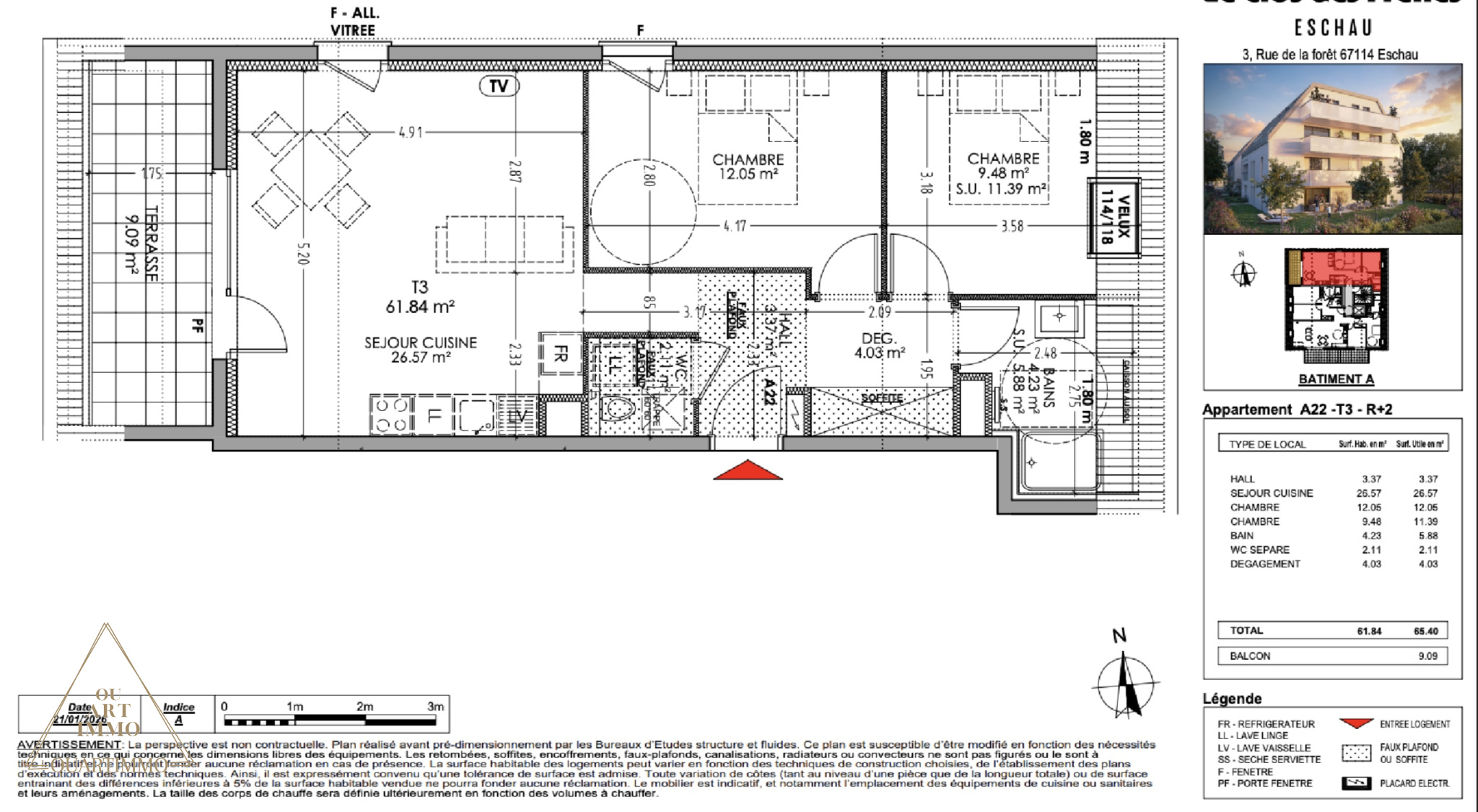 Nous vous proposons ce bel appartement 3 pièces de 61,84 m² habitables (66,93 m² au total avec terrasse), situé à Eschau, dans un environnement calme et résidentiel, idéal pour une vie de famille ou un investissement.