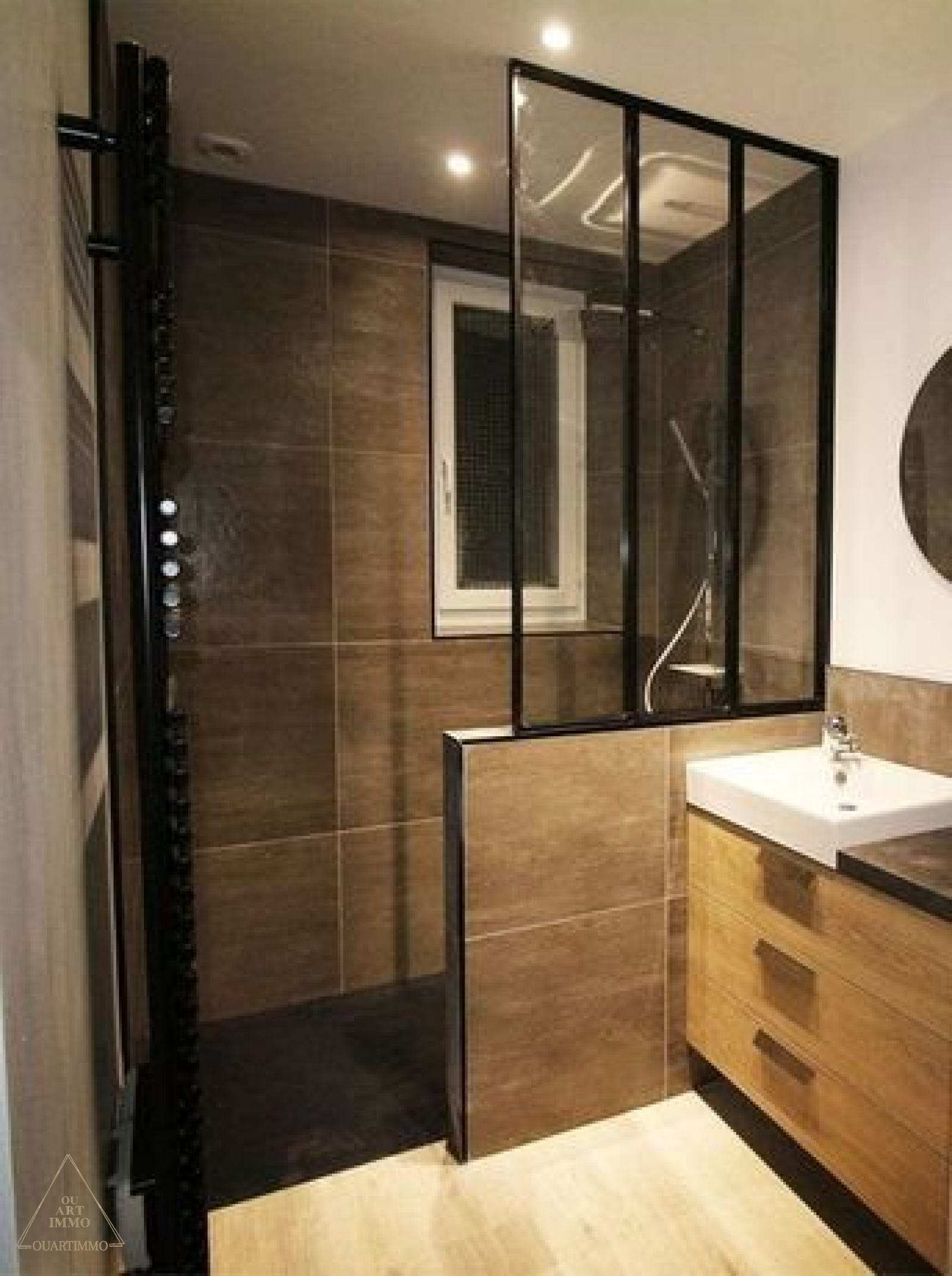 - Salle de bain équipée, meuble vasque, faïence toute hauteur sur les 4 murs