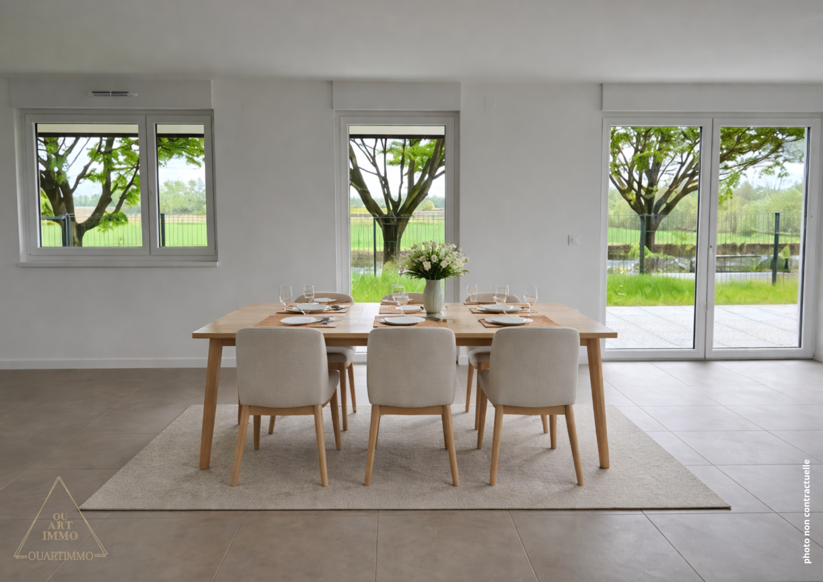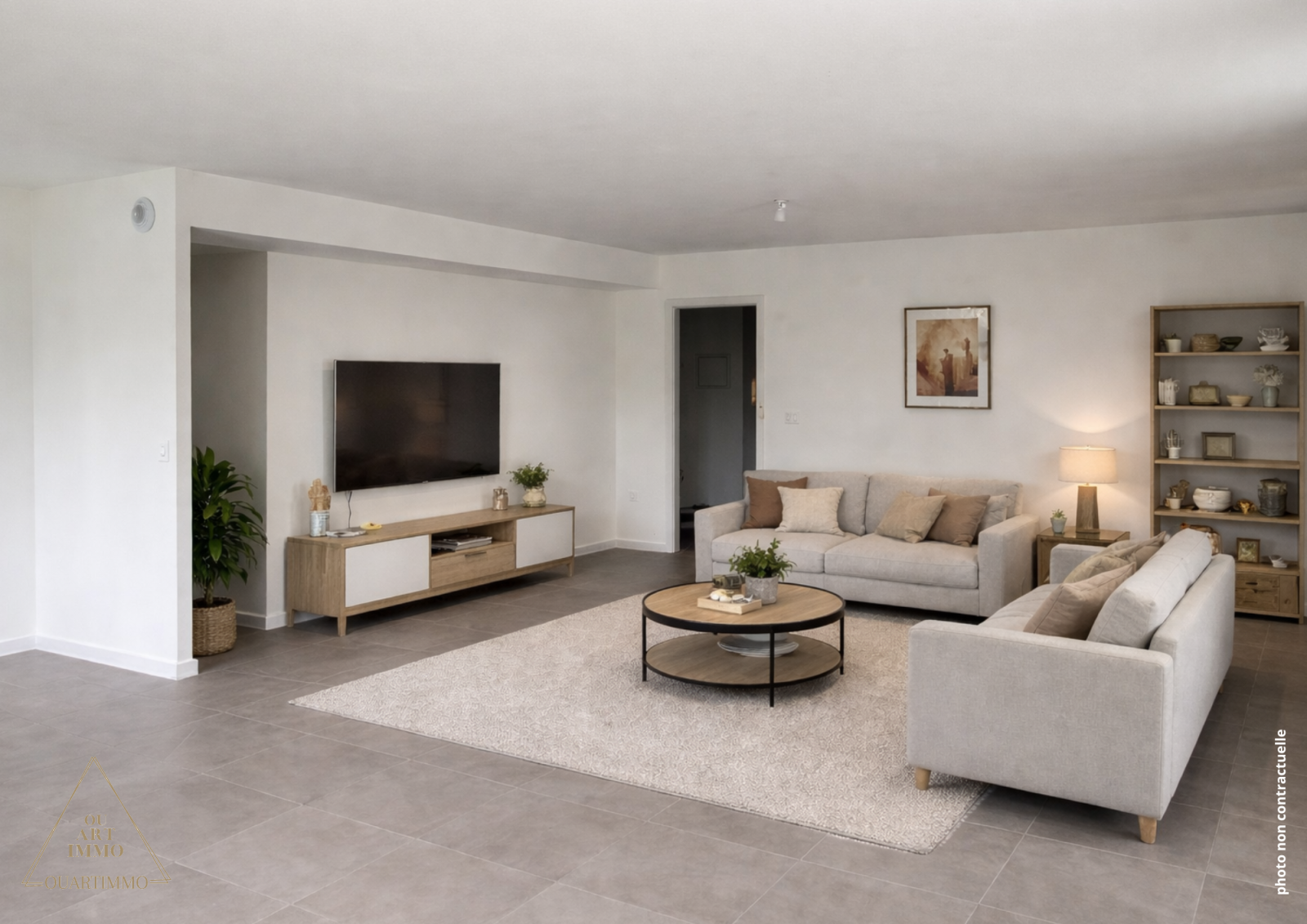 - Un beau séjour de 50m2 avec cuisinie ouverte, donnant sur terrasse 32m2 et jardin de 118m2